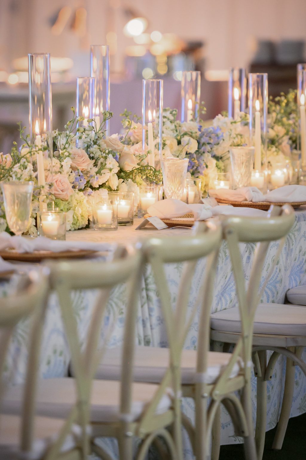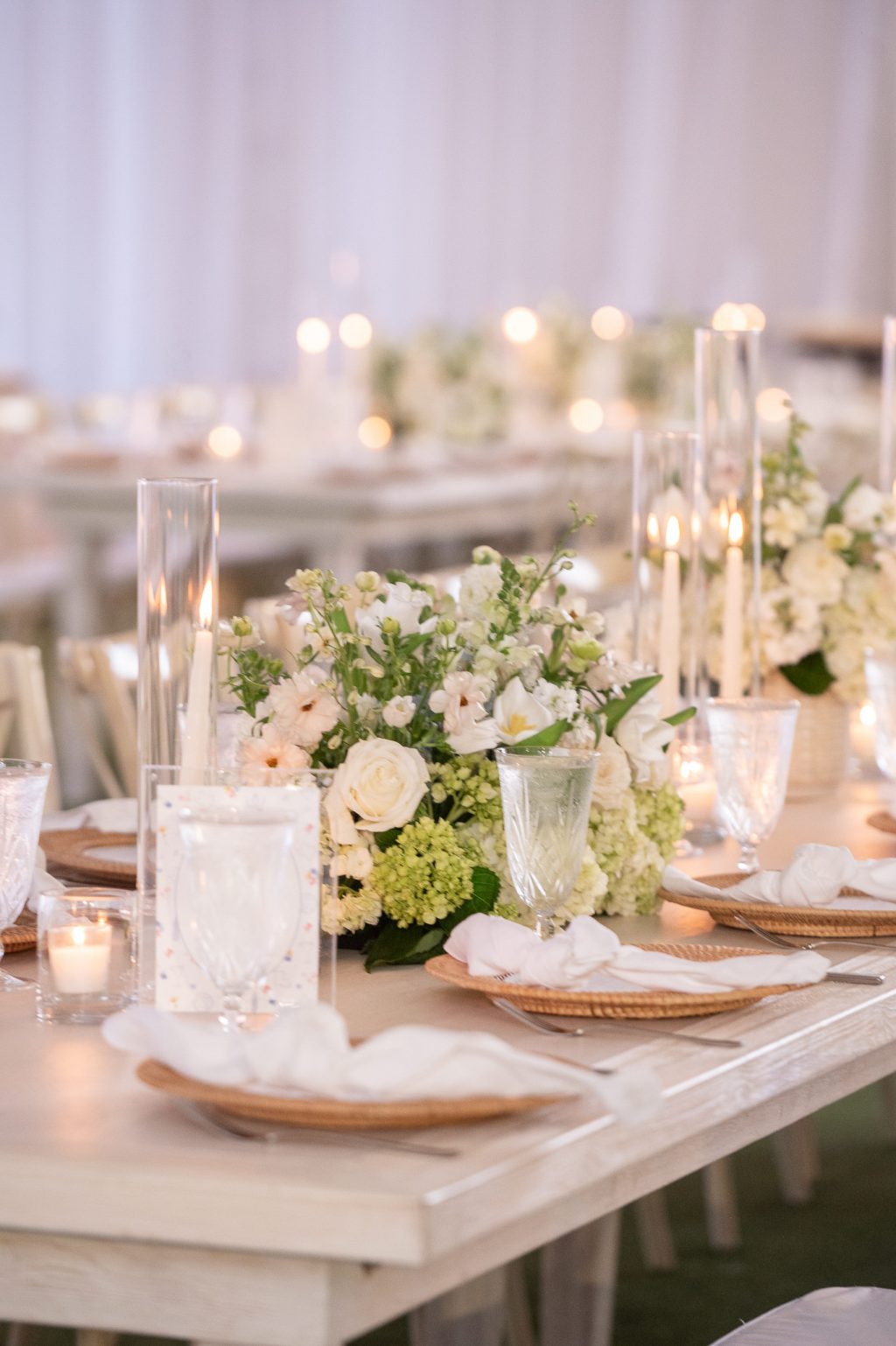 Long candlelit tables were draped in soft linen and adorned with floral arrangements by Westbank Flower Market.