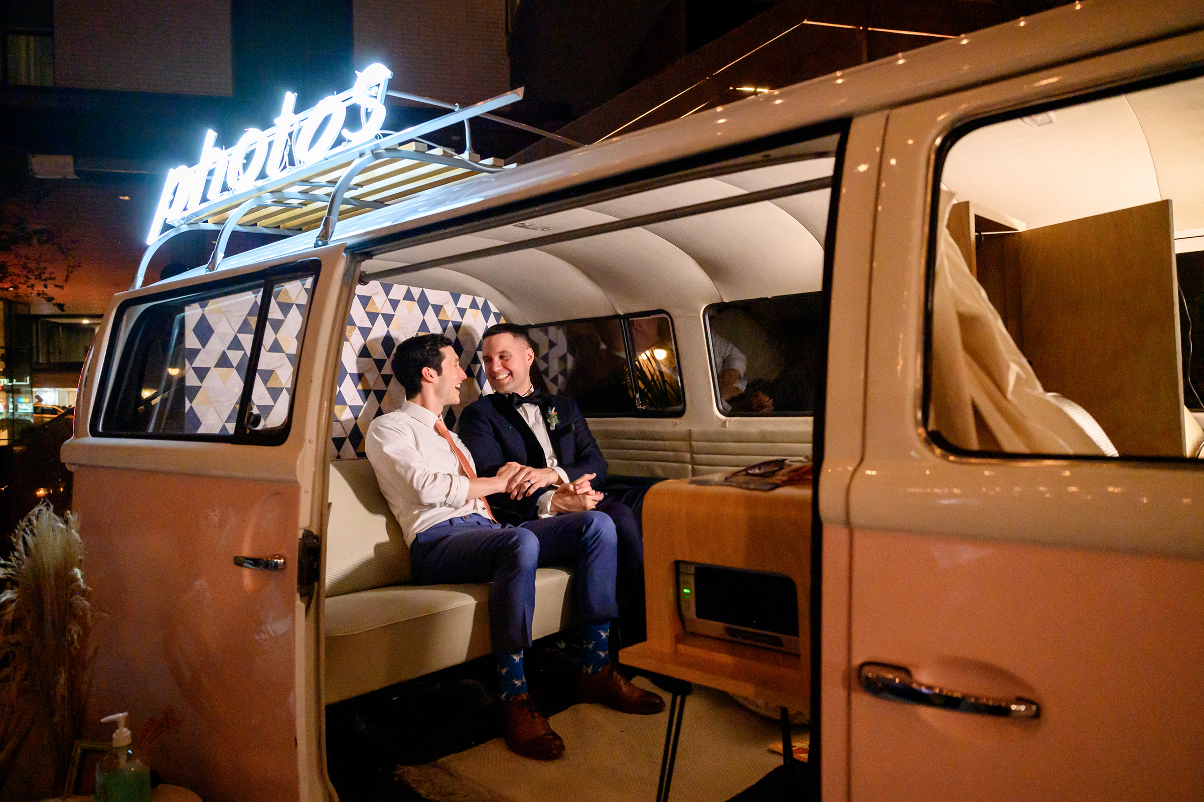 A weekend full of celebration, these grooms were married at an intimate destination beach wedding earlier in the year and decided to host the weekend full of celebration with all their family and friends in their home city of Austin. The weekend started off with a casual portrait session of the two of them and then later met up for the welcome party. The next day we photographed the two of them getting ready and a swaky portrait session in their tuxes. Their reception at Skybox was full of friends, family and colleagues with featured heartfelt toasts, first dances, and cake cutting and lots and lots of yummy food.